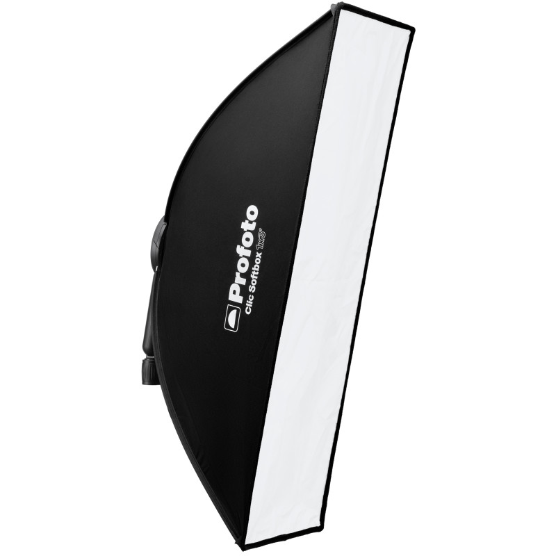 Description La Profoto Clic Softbox 1x3 est une softbox compacte en forme de bande (30x90 cm) conçue pour les flashes Profoto de la série A. Elle produit une lumière douce avec de longues ombres lisses sur le côté...