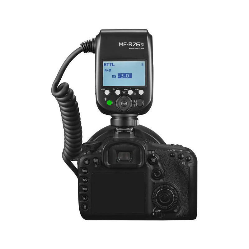 Description Suite au succès du ring flash manuel Godox MF-R76 , la marque propose une version améliorée intégrant la compatibilité TTL Canon pour un confort d’utilisation optimal en macrophotographie. Ce flash...